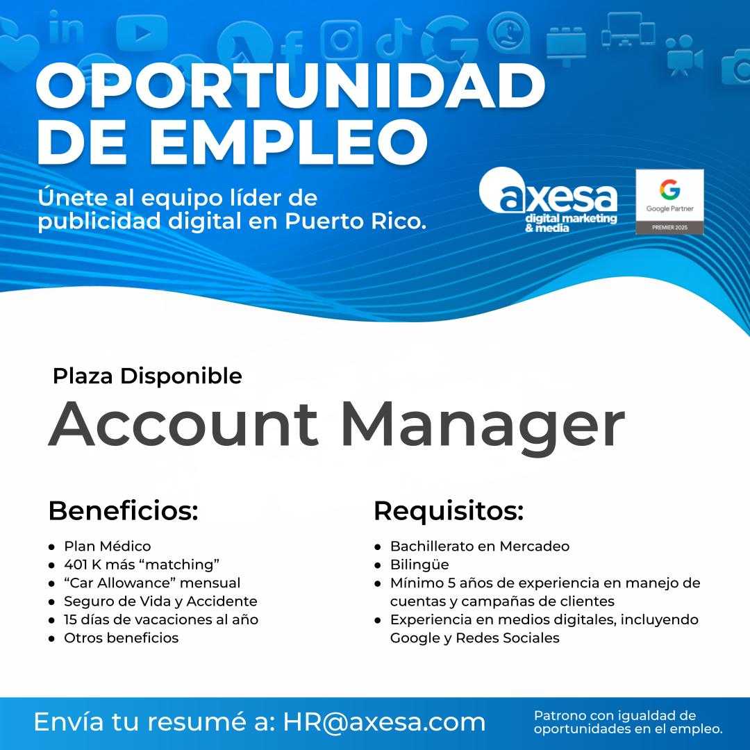 Mínimo 5 años de experiencia en manejo de cuentas y campañas de clientes. Experiencia en medios digitales incluyendo Google y Redes Sociales.